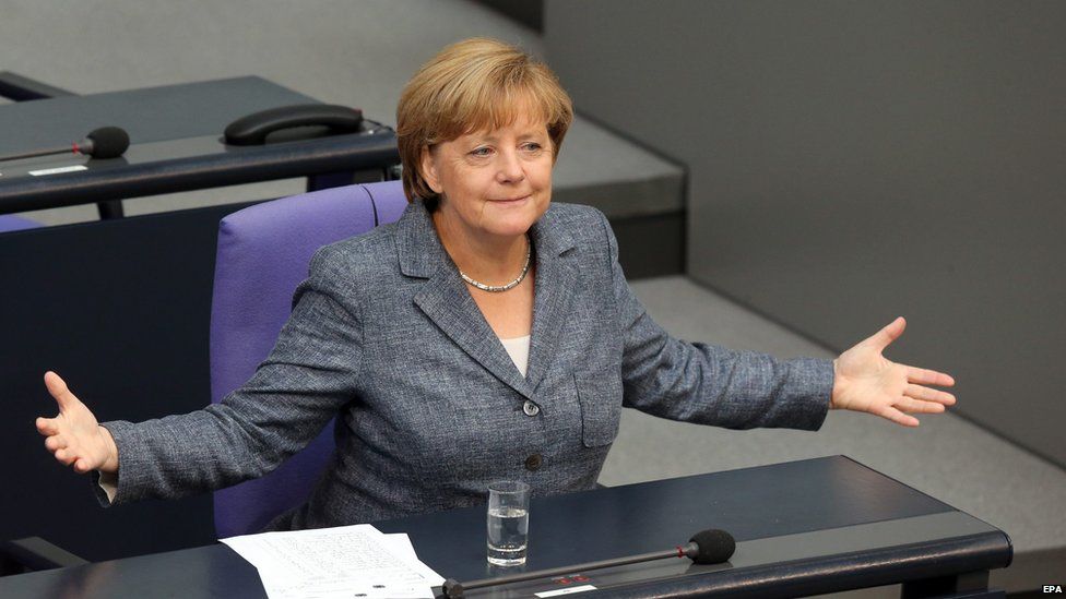 Man sieht es der Bundeskanzlerin Angela Merkel an, dass sie einen Sieg errungen hat, einen Sieg auf der ganzen Linie - so hat es jedenfalls der Fotograf der BBC News heute im Bild festgehalten. Ein gelungener Schnappschuss.